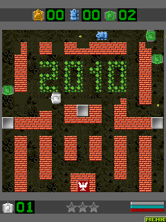Вспомним прошлые года, а именно игру любимые танчики Денди еще с 8-ми битных приставок. Сейчас игру танчики Денди 2010 можно скачать на свой мобильный телефон и вспомнить эту незабываемую стратегию. Окунись в мир танковых баталий. Пройди более чем 50 новых территорий, обороняй свой штаб и уничтожай врага!